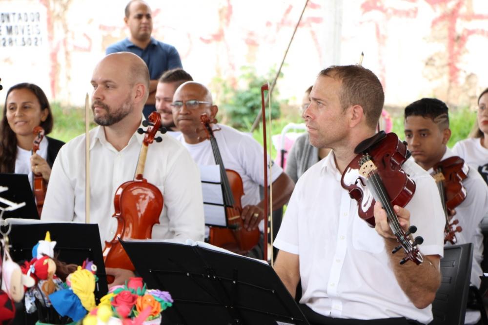 A Orquestra Chiquinha Gonzaga, sob-regência do maestro Robson encantou a todos com a apresentação do repertório.