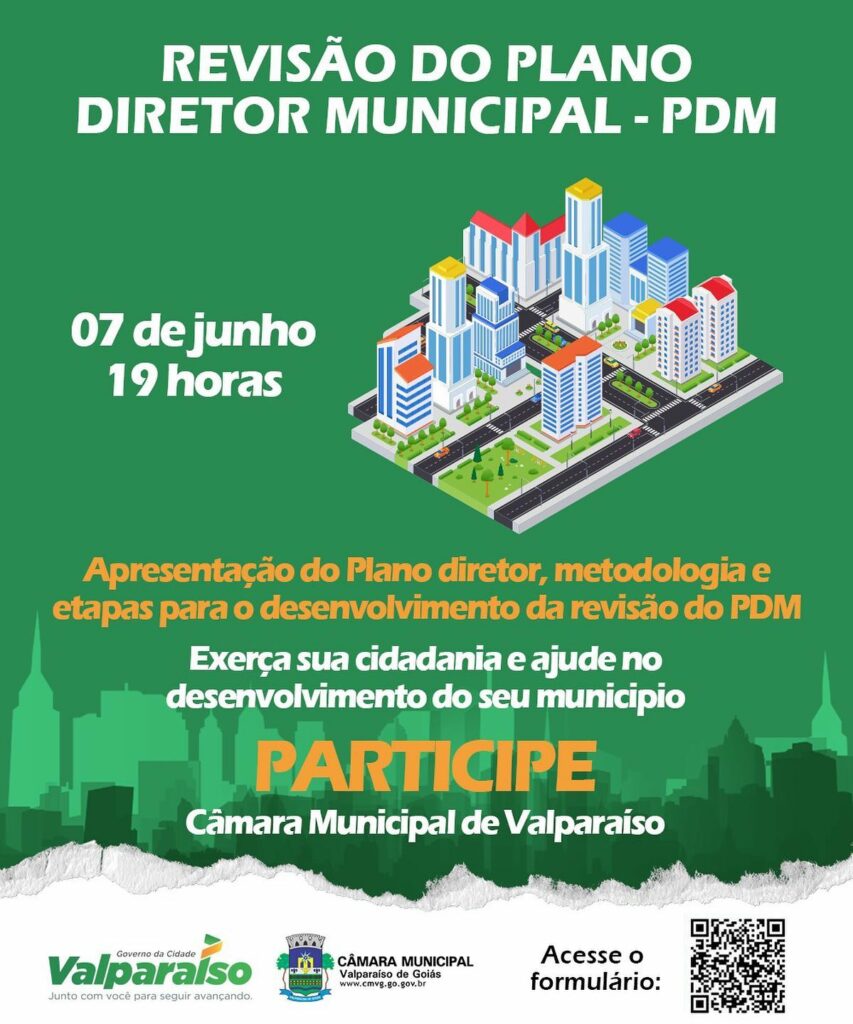 O Governo de Valparaíso de Goiás convida a todos para participar da 1° Audiência Pública sobre a Revisão do Plano Diretor Municipal (PDM).
