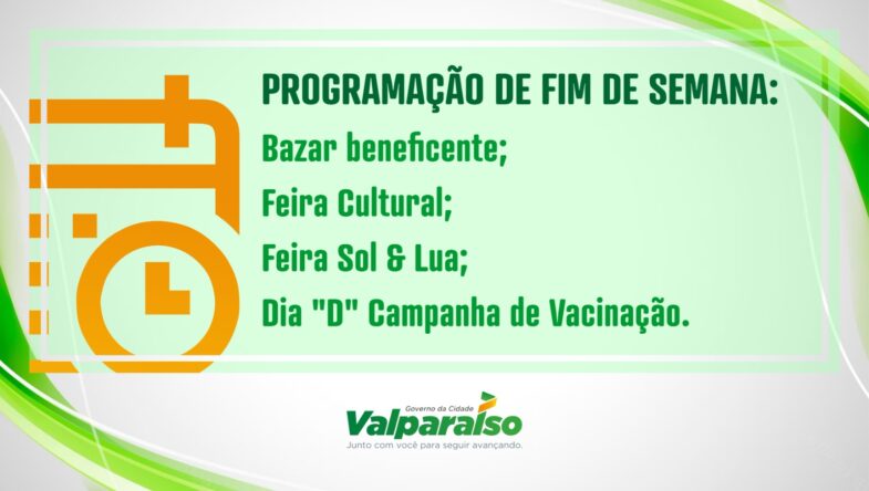 O Governo Municipal de Valparaíso de Goiás incentiva a população trazendo algumas opções para os Valparaisenses aproveitarem o fim de semana, cuidarem de sua saúde e fomentar os projetos do município.