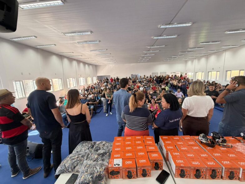 A Prefeitura de Valparaíso de Goiás realizou, nesta semana, a entrega de 350 abafadores de ruído e colares de identificação destinados a crianças e adultos atípicos do município. A ação contou com a presença do prefeito Marcus Vinicius, da secretária de Assistência Social, Josélia Leão, da secretária de Saúde, Luciana Mendes, e da secretária de Educação, Maria Frazão, evidenciando a atuação integrada da gestão em prol da inclusão e do cuidado com a população.