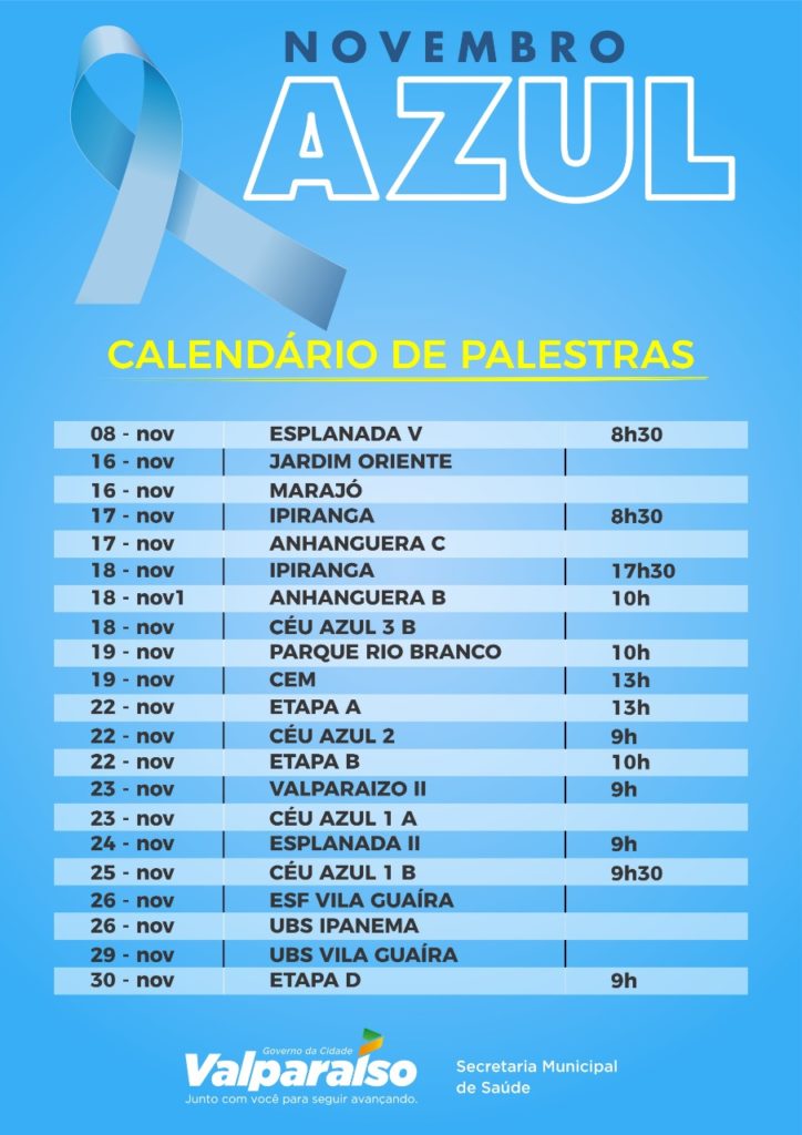 Além disso, a comunidade poderá participar de palestras educativas de conscientização e prevenção do câncer de próstata. Confira o calendário: