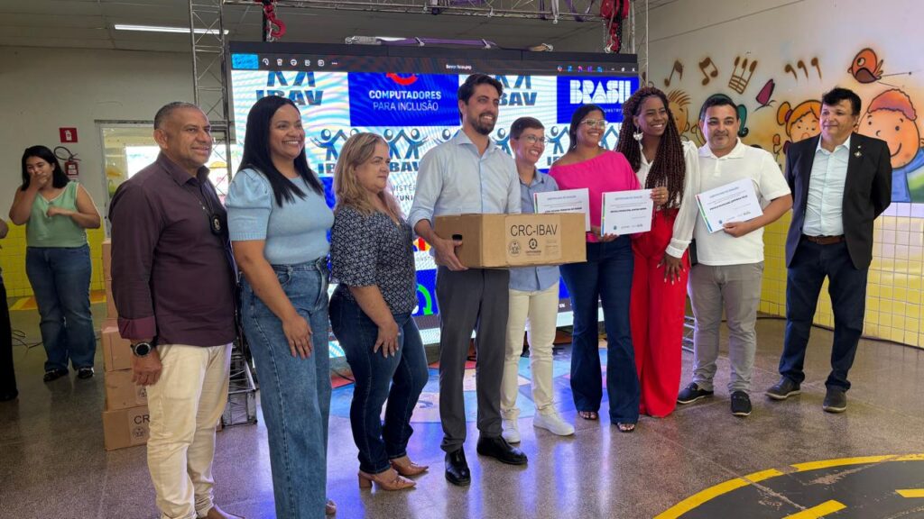 Representando a área técnica do CRC do Instituto IBAV, o professor Francisco, da área de tecnologia, ressaltou o impacto do acesso precoce à informática no desenvolvimento das crianças. “Nada para mim é mais gratificante do que estar aqui entregando computadores que vieram do Ministério das Comunicações. Esses computadores vão para crianças bem pequenininhas, e é delas que vai vir o futuro tecnológico do nosso Brasil. Quem não aprende tecnologia desde cedo corre o risco de se tornar um analfabeto tecnológico”, destacou.