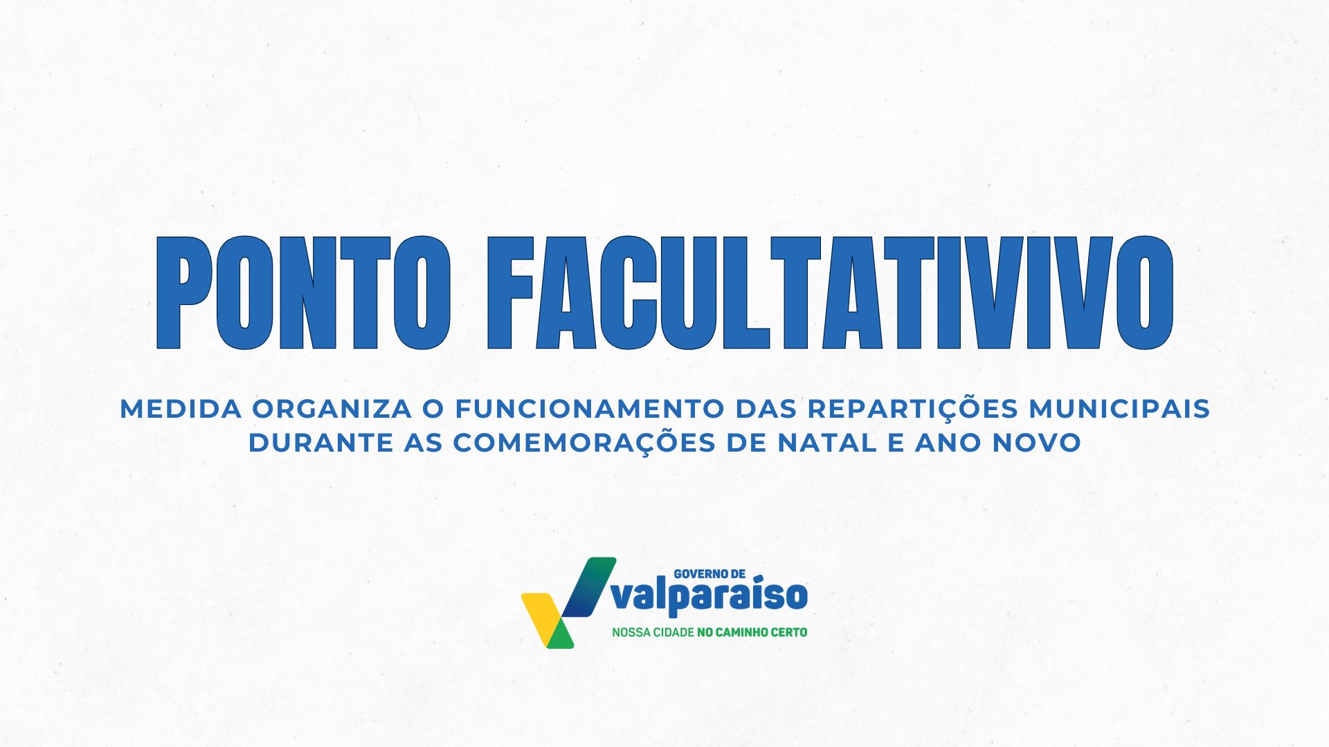 A Prefeitura de Valparaíso de Goiás publicou o Decreto nº 712, de 12 de dezembro de 2025, que estabelece ponto facultativo nas repartições públicas do Poder Executivo Municipal em datas específicas do período de fim de ano. A medida tem como objetivo organizar o funcionamento dos serviços públicos durante as celebrações natalinas e de Ano Novo.