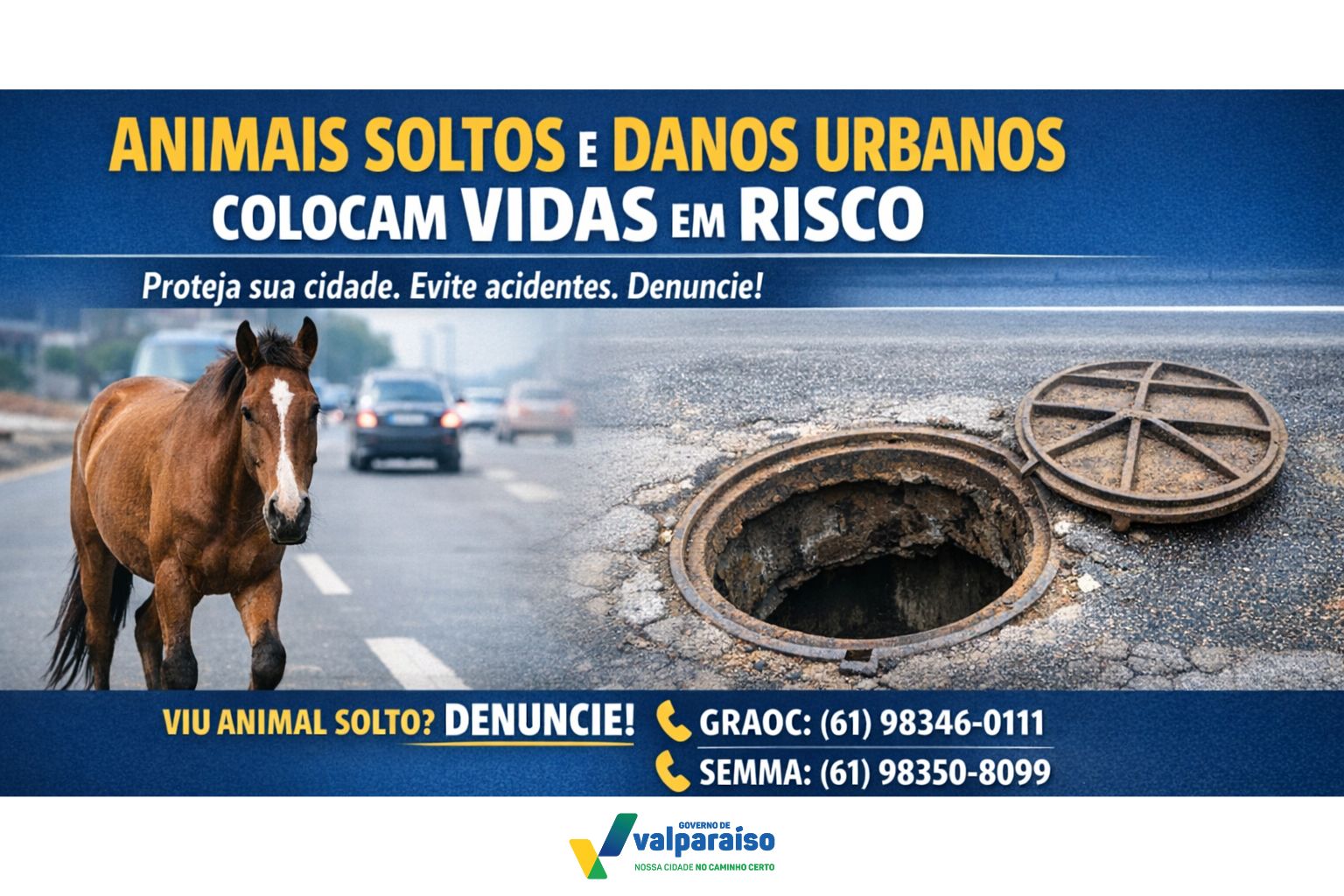 A Prefeitura Municipal reforça o alerta à população sobre os riscos causados por animais soltos em vias públicas e pela depredação de equipamentos urbanos. Essas situações representam perigo direto à segurança de pedestres, motoristas e dos próprios animais, além de causarem prejuízos à mobilidade urbana e ao patrimônio público.