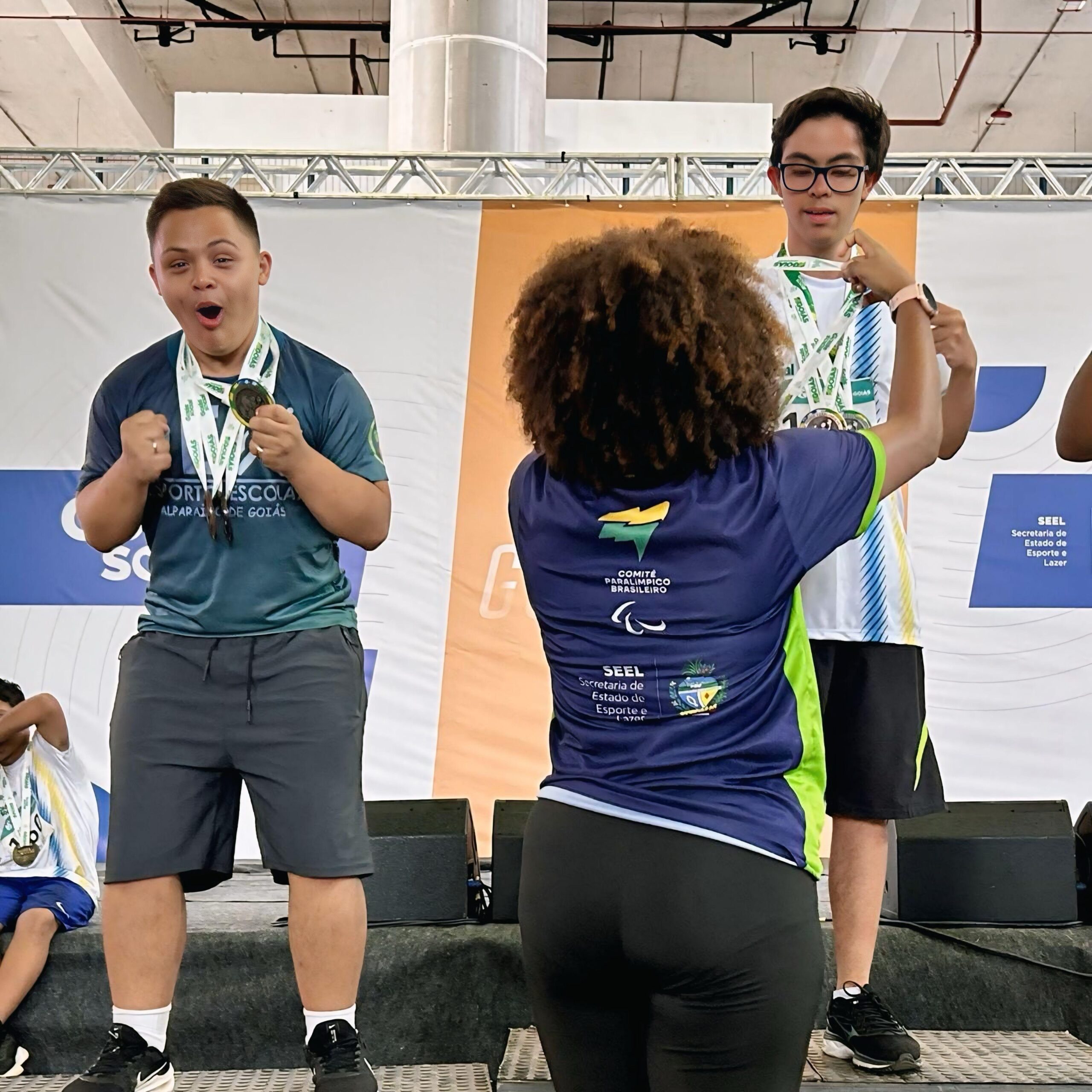 Goiânia recebeu atletas de todo o Estado entre sexta e domingo para mais uma edição dos Jogos Paralímpicos de Goiás. A Secretaria Municipal de Educação de Valparaíso, por meio da Diretoria de Desporto Escolar, foi a responsável pela delegação da cidade, que foi composta por 13 atletas e 4 professores – Luciana Soares e Igor Eduardo (SME), Alvam de Oliveira (CEPMG) e Guthemberg Costa (Padre Réus) – e trouxe 22 medalhas na bagagem.