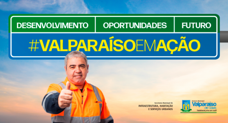 O futuro se constrói com trabalho e ação, assim o Governo Municipal de Valparaíso de Goiás tem dado andamento ao crescimento do município. Uma cidade organizada, acolhedora e desenvolvida pedem atitudes positivas, que aos poucos fazem a diferença!